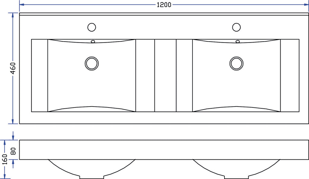 Tigris losse kunstmarmer dubbele wastafel 1200x460 wit