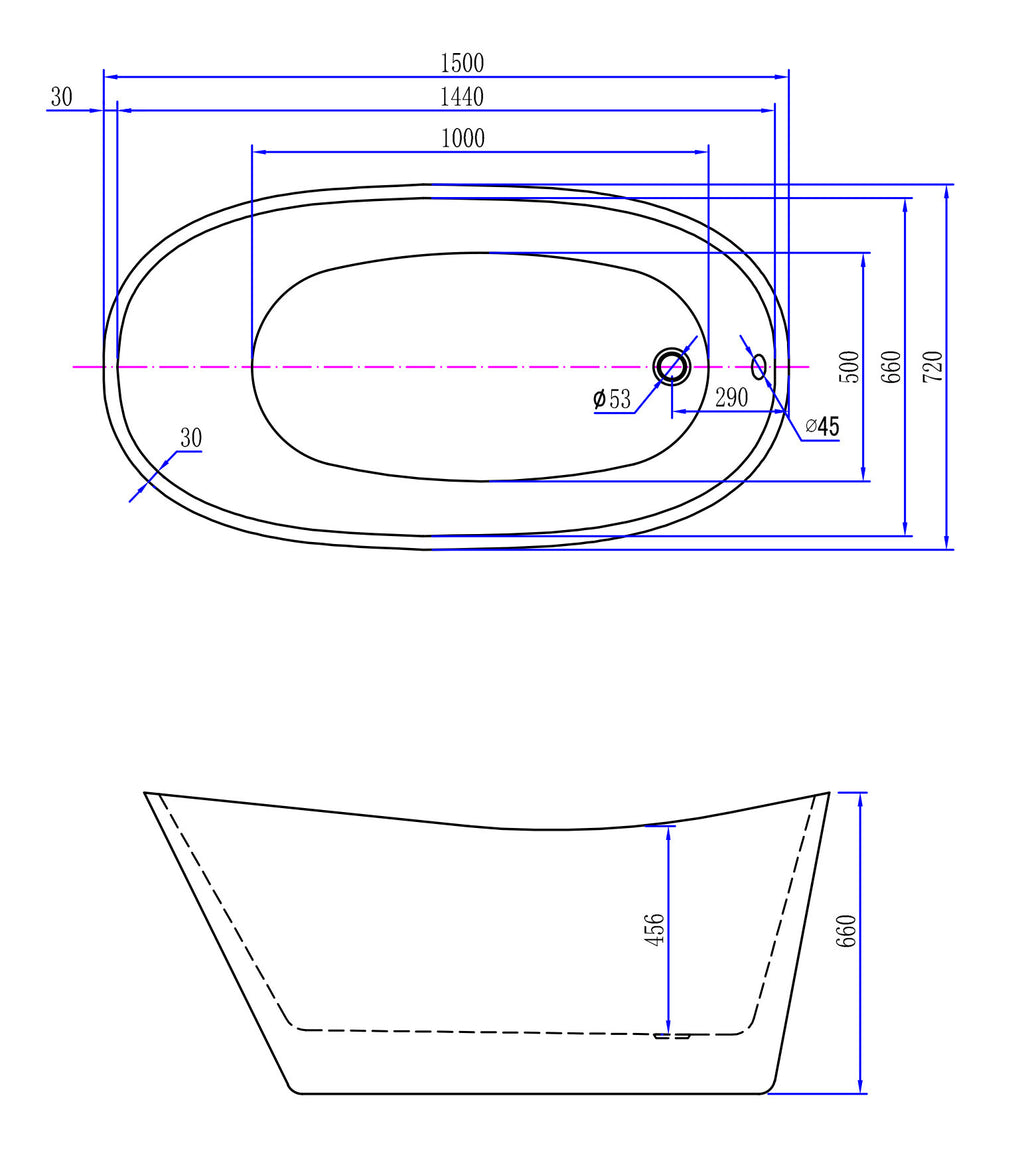 Trapeze vrijstaand ligbad 150 x 72 cm acryl glans wit met waste glans wit
