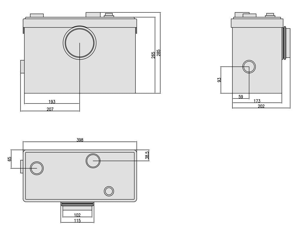 Voldac wc-vergruizer Pomp : 220V-230V pomp : 50hz 600 w vermogen 3 Ampere, max vertikale duwkracht 6,5 m max. horizontale duwkracht 60 m 3 aansluitingen mogelijk.