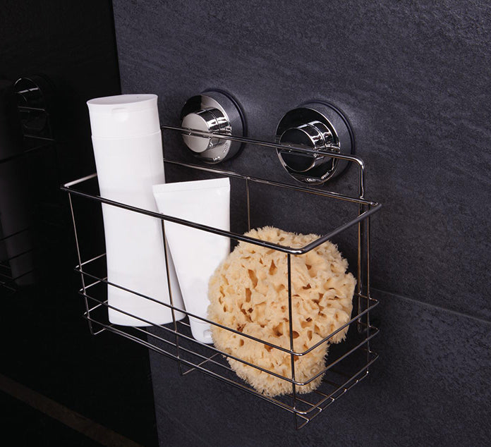 Dit doucherekje is gemaakt van kunststof en roestvrijstaal en hang je door middel van de zuignappen makkelijk op in de badkamer.