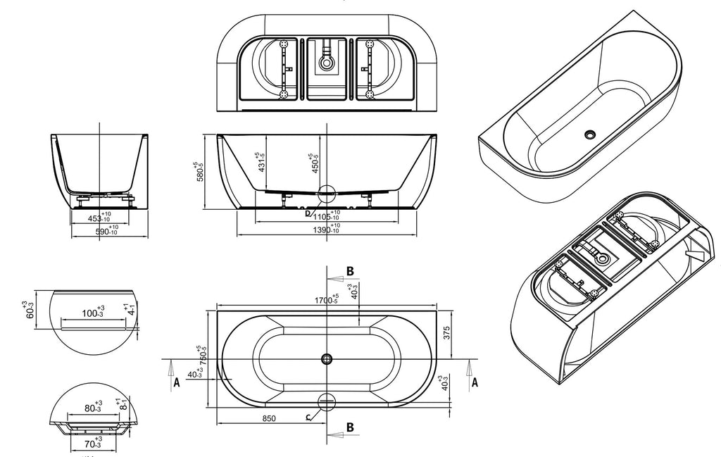 Zenn half vrijstaand ligbad 170 x 75 cm acryl glans wit met waste glans wit