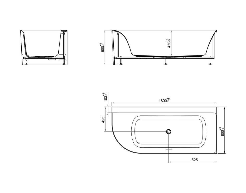 Zenn hoekbad rechts 180 x 80 cm acryl glans wit met waste glans wit